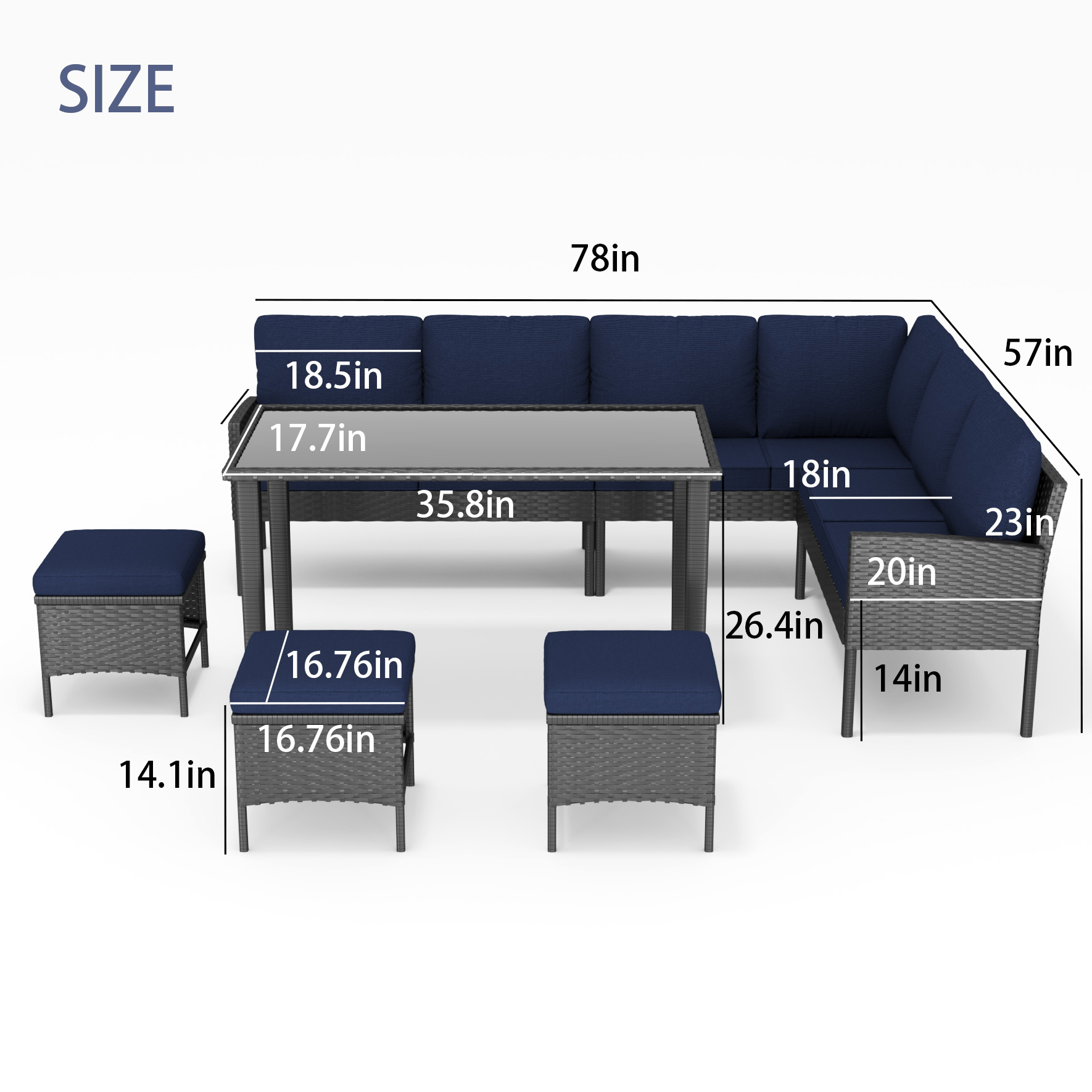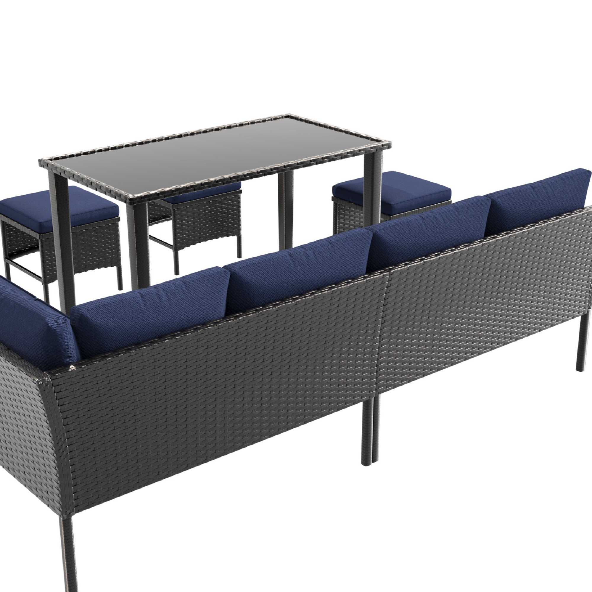 Product Name:Small space patio furniture 7-piece outdoor furniture set, backyard furniture set, waterproof seat cushion, glass table, space saving, suitable for backyard, terrace or garden,Dark blue